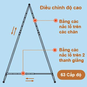 - Diện tích chiếm dụng trên sàn nhà: 120cm x 110cm x độ choãi (độ choãi có thể điều chỉnh được nhờ các lỗ trên 02 thanh giằng)